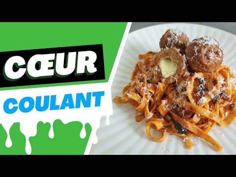 Les tagliatelles aux boulettes de viande font souvent partie des bons petits plats qu’on adore pendant l’enfance. Aujourd’hui, je vous propose de les revisiter. À l’intérieur des boulettes se cache un cœur coulant de mozzarella filante… de quoi épater vos convives, qu’ils soient petits ou grands ! Les pâtes sont cuites à l’italienne. Elles sont d’abord précuites à l’eau bouillante salée, avant d’être liées dans une sauce tomate maison aux olives noires et aux câpres.